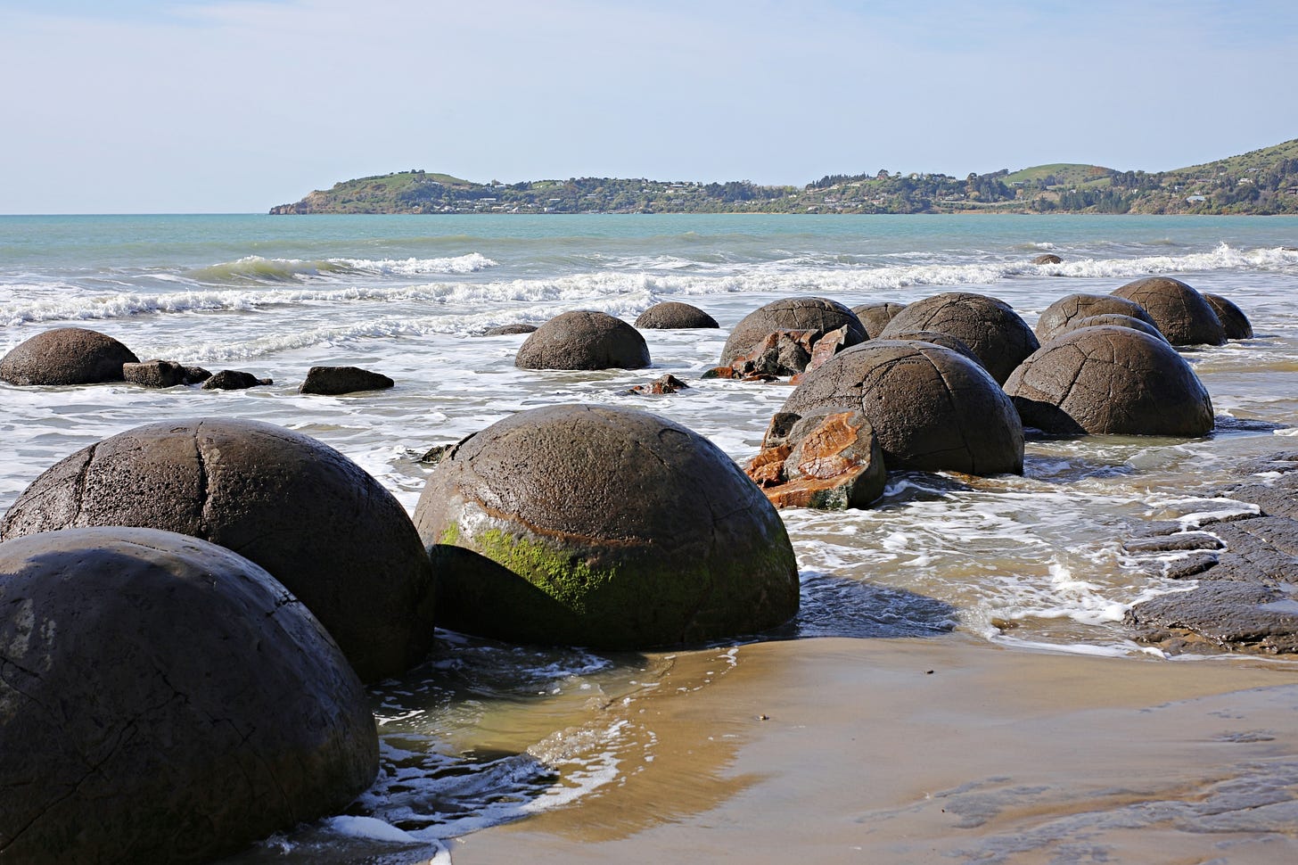 Mineralising solutions fill subsequent cracks, depositing minerals such as calcite, aragonite or barite. The cracks can often form a radiating pattern, and taper outward toward the rim of the concretion. The concretionary cement often makes the nodule harder and more resistant to weathering than the host stratum. An excellent example of this is the Moeraki Marbles in New Zealand (see second photo).
