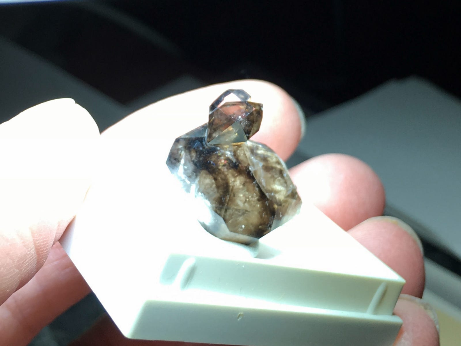 Here is another example. A smoky quartz “rabbit” from Mooralla, Victoria. Mooralla is well-known for its smoky quartz specimens that are found in a rhyolite in western Victoria. The site is a State designated fossicking area, although these days, you need to dig pretty deep holes!